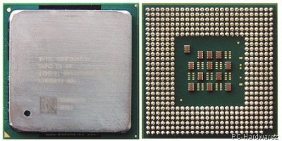 The Pentium 4 uses a FC-PGA2 packaging. While the Integrated Heat Spreader (IHS) affords good protection to the CPU itself, the pins on the underside are fragile and easily bent, so the chip needs to be handled with care.